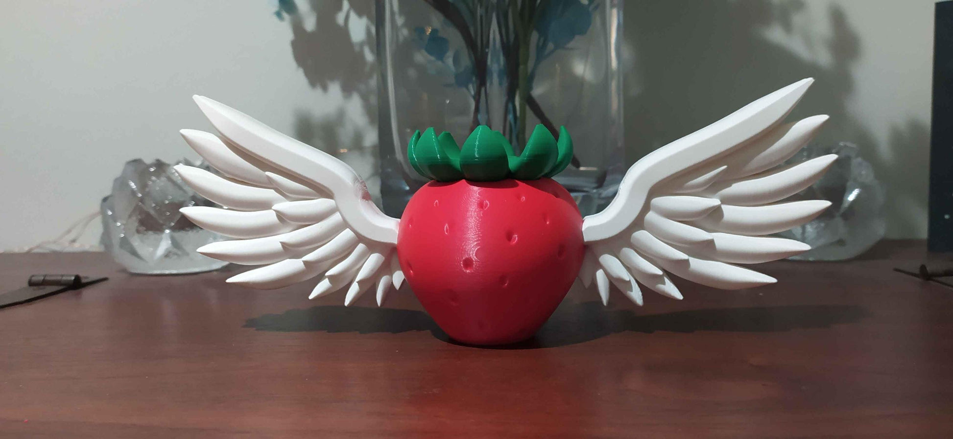 The Flying Strawberry is a whimsical and vibrant replica of the iconic collectible from the video game Celeste.