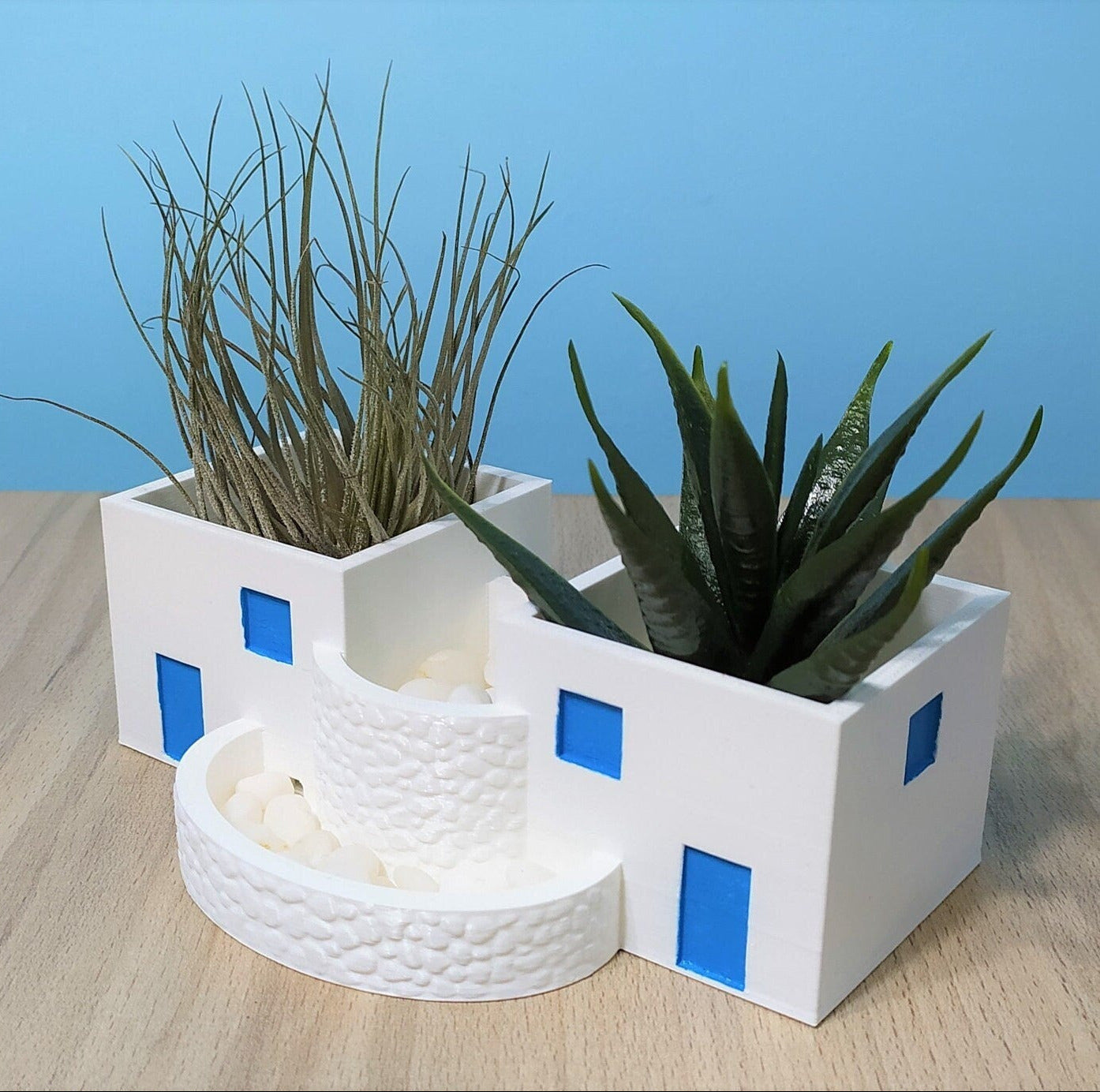 Give a mediterranean breeze to your home with this Planter shaped as a house from Santorini. Has space for 2 medium Air plants or regular plants.