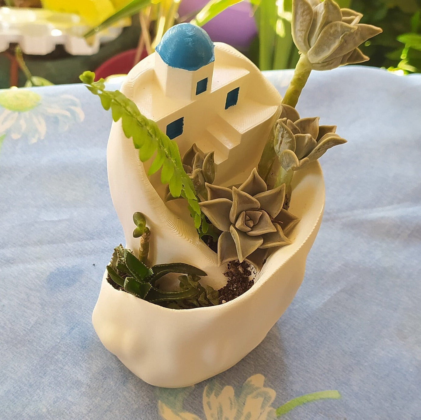 There is a hole inside that can be filled with small plants, or water and create a water slide.